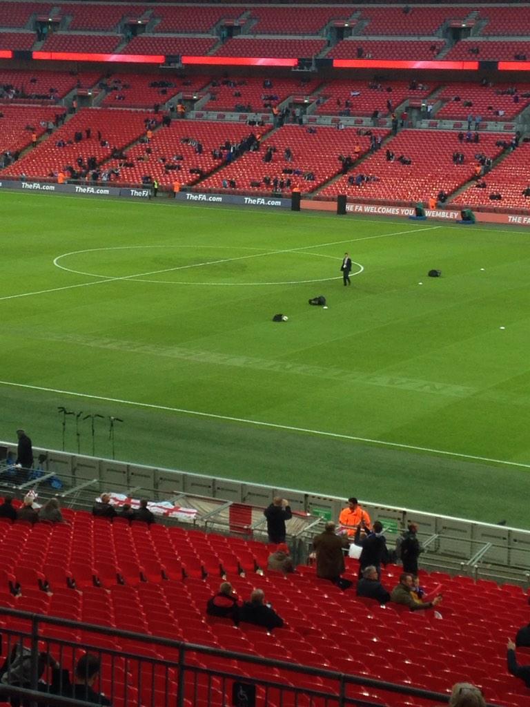Wasn't expecting Wembley pitch to look this ropey from up high. Centre circle patchy and clear NFL words down pitch